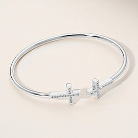 Stainless Steel Baguette Stone Nail Head Tip Hinged Cuff