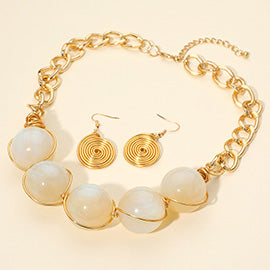 Sparkled Sphere Wire Link Beaded Statement Necklace Set